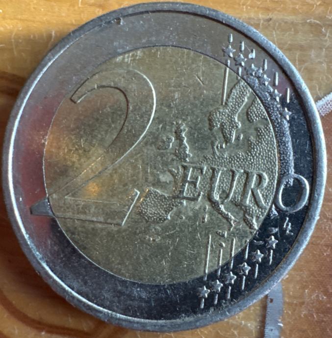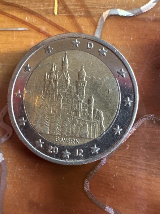 Kovanica od 2 eura Njemačka (D) dvorac Neuschwanstein sa necentriranim otkovom na prednjoj strani.