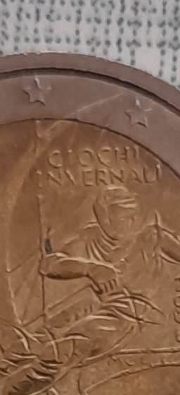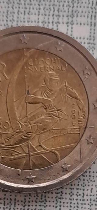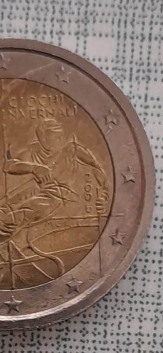 2 euro italia invernali torino, nejasan otisak, slova, rimski brojevi, brojevi, stup nije izrezbaren, vidi slike