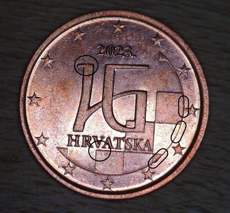 2 EURO CENTA, HRVATSKA, 2023, SA GREŠKAMA