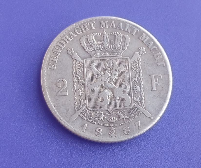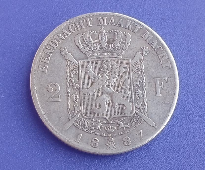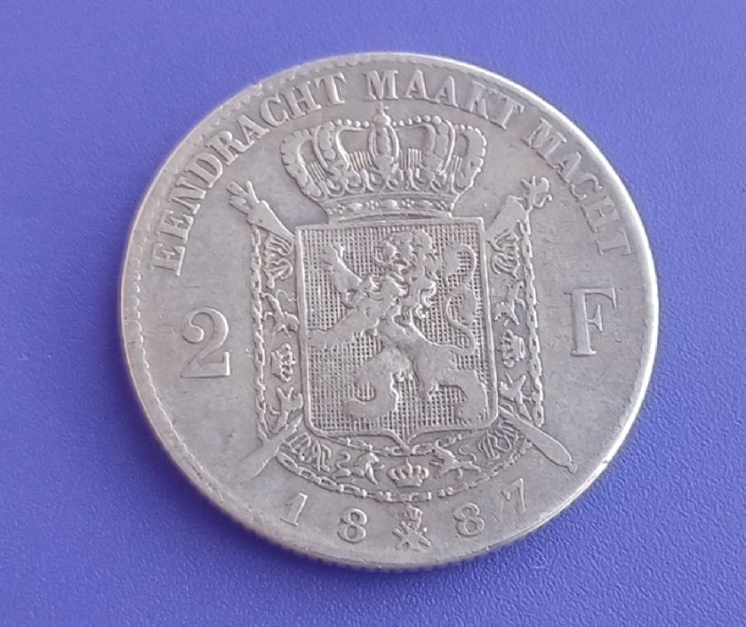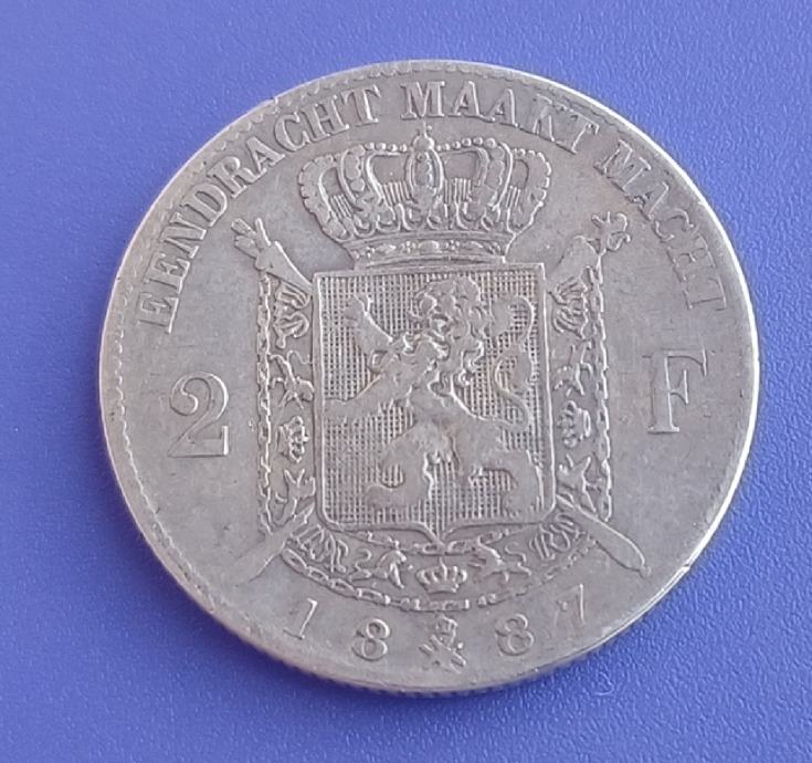 2 FRANCS (FRANKA) 1887-BELGIJA (BELGIUM)-SREBRO-JAKO RIJETKO