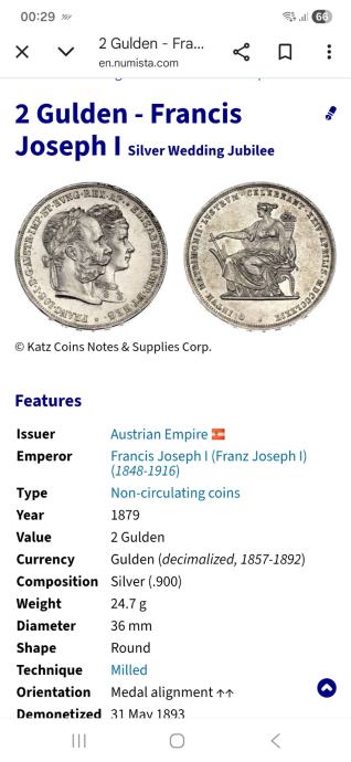 2 Gulden 1879- Francis Joseph 1.