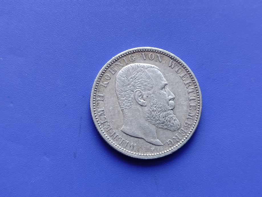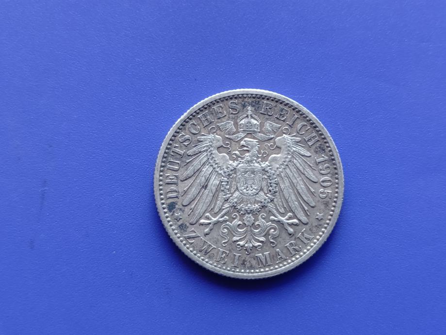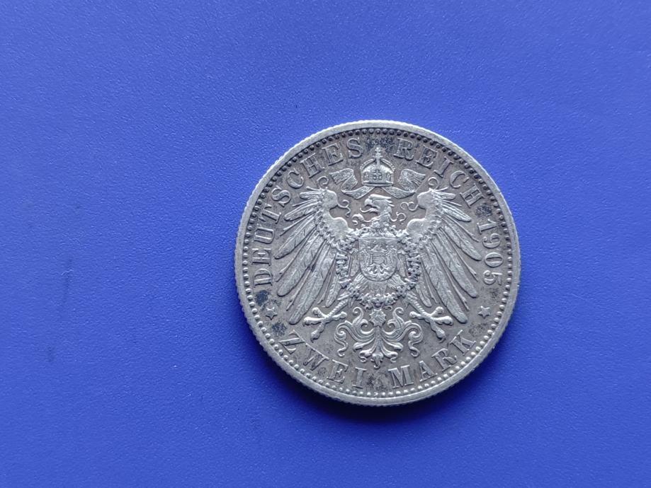 2 MARK 1905 F-WURTTEMBERG-WILHELM II-SREBRO-RJEĐE