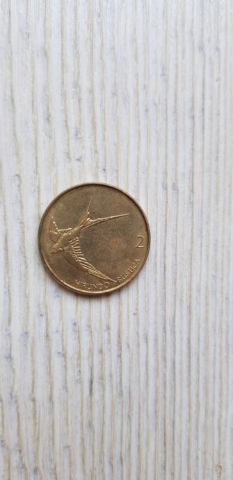 Prodajem kovanicu od 2 tolara iz Slovenije. Hodina izdanja je 1996. Kovanica se nalazi u odlicnom stanju. Nema tiskarsku gresku. Na prednjoj strani se nalazi veliki broj 2 (u sredini) i pored njega se nalazi godina izdanja. Također pise: "Republika Slovenija dva tolarja". Na straznjoj strani se nalazi broj 2 i neka velika ptica i pise:"Hirundo Rustica". Ako ste zainteresirani nazovite na broj 092 423 3693 ili posaljite poruku na WhatsApp na isti broj. Cijena je 6€.
