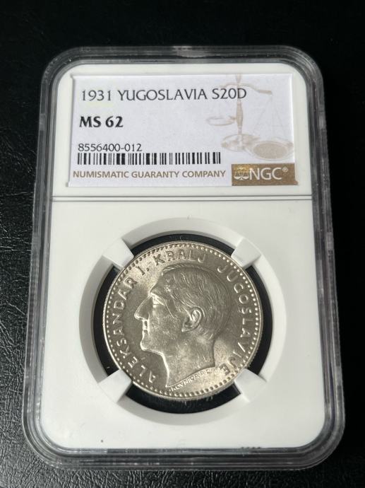 20 Dinara Jugoslavija 1931 PMG MS62