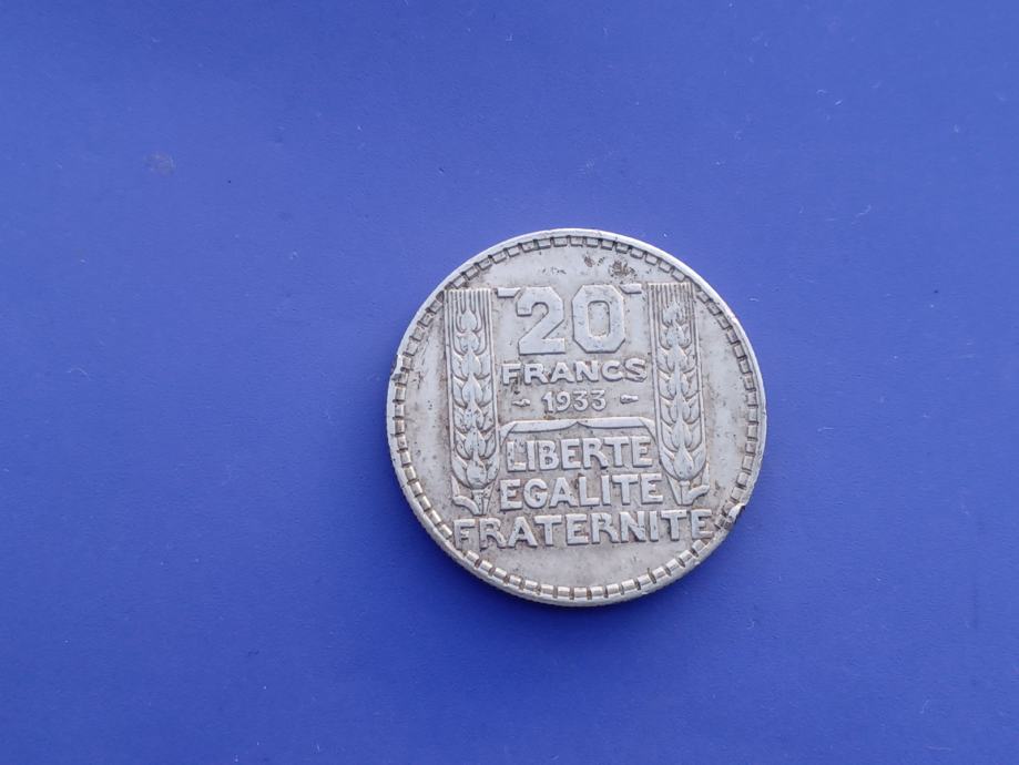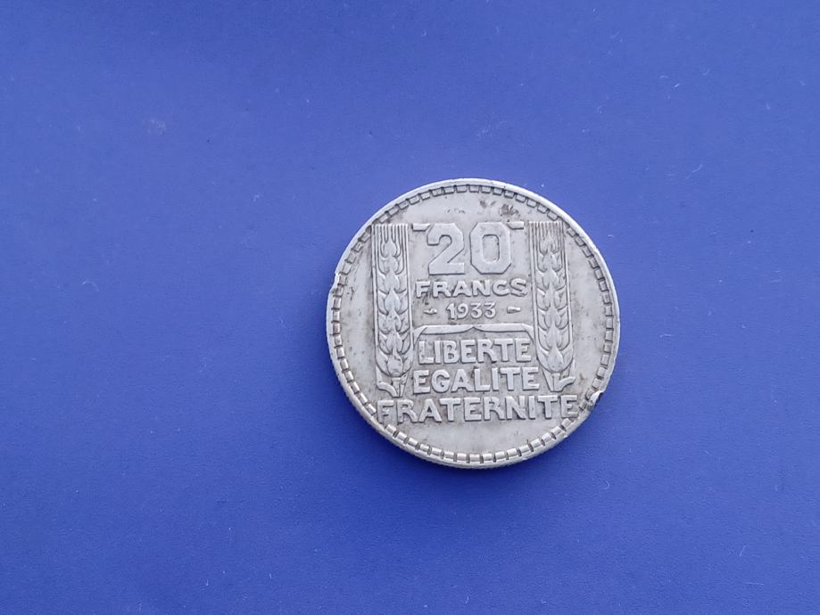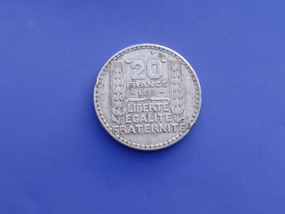 20 FRANCS 1933-FRANCE-SREBRO