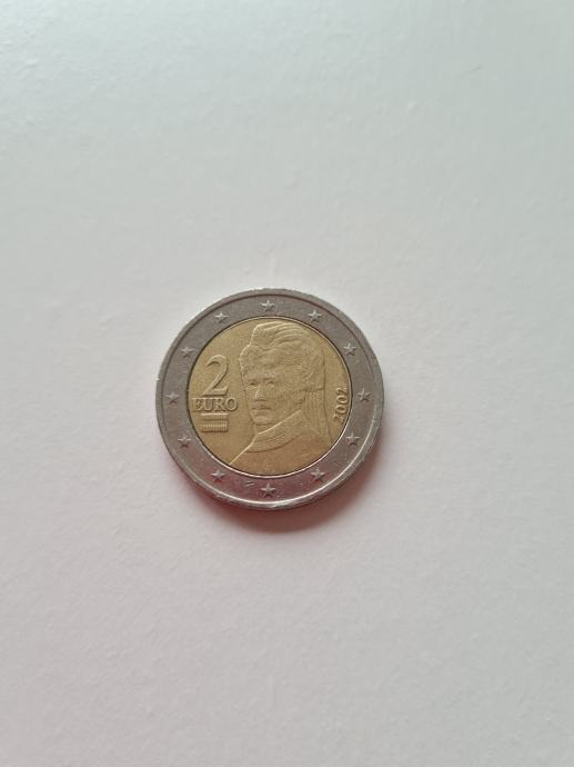Ova kovanica od 2 eura iz 2002. godine s likom Berthe von Suttner, austrijske pacifistkinje i prve žene dobitnice Nobelove nagrade za mir.