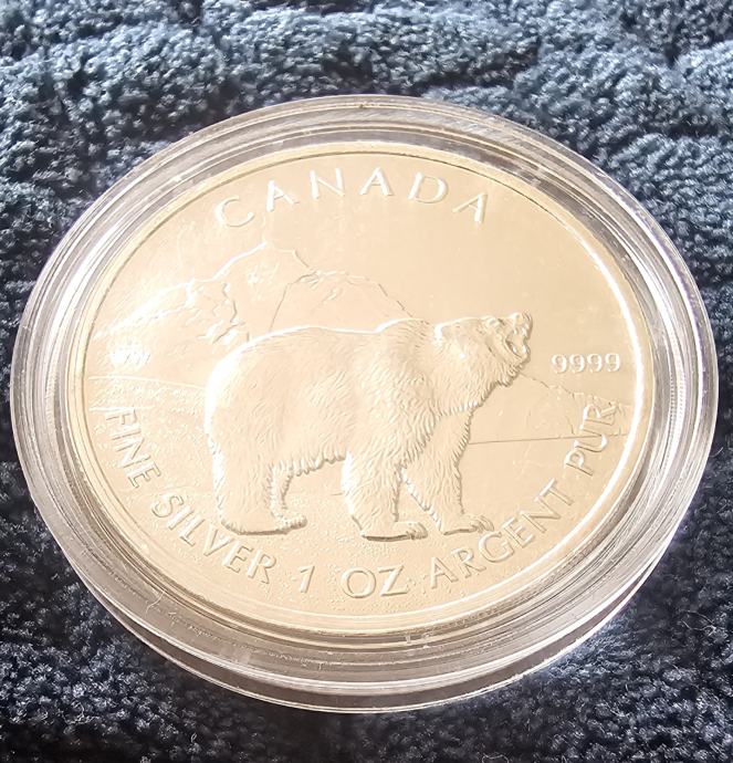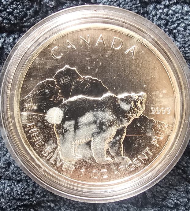 2011 1 oz Canada Wildlife Grizzly Bear - srebrnjak