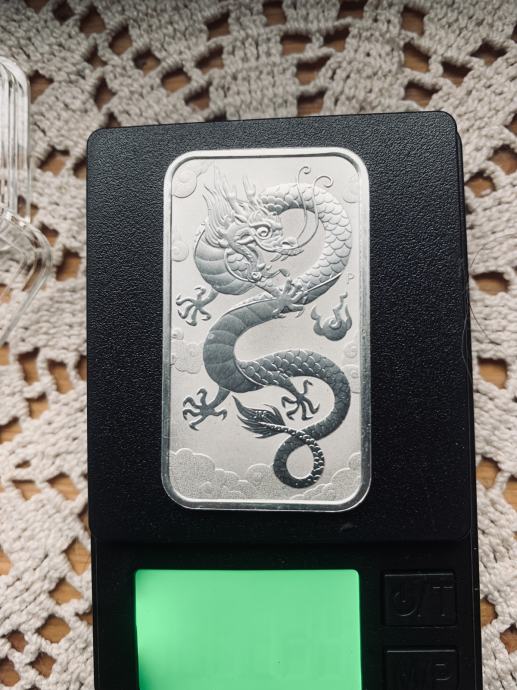 Prodajem 2019 1oz Dragon Rectangular Silver Bar (Coin), srebro 999, Perth Mint iz privatne kolekcije.