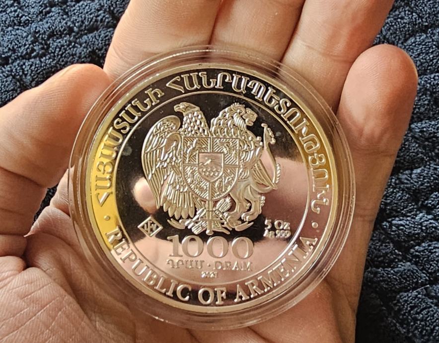 2021 Armenia 5 oz Silver 1000 Drams Noah’s Ark - 155.5 grama 999