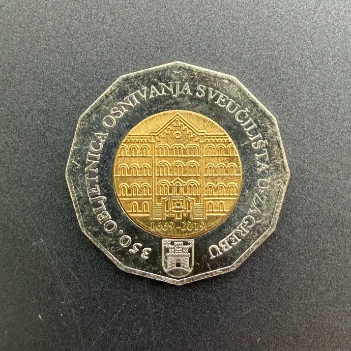 Prodajem prigodnu kovanicu od 25 kuna iz 2019. godine povodom obilježavanja 350. obljetnice osnivanja Sveučilišta u Zagrebu, 1669. – 2019. Kovanica je u izvrsnom stanju. Odgovaram na poruke ukoliko van nešto zanima.