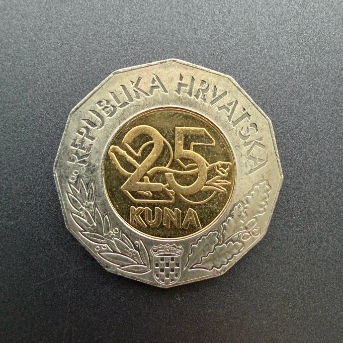 Prodajem prigodnu kovanicu od 25 kuna iz 1997. godine povodom uvođenja nove novčane jedinice eura u jedanaest zemalja Europske unije. Kovanica je u izvrsnom stanju. Odgovaram na poruke ukoliko van nešto zanima.