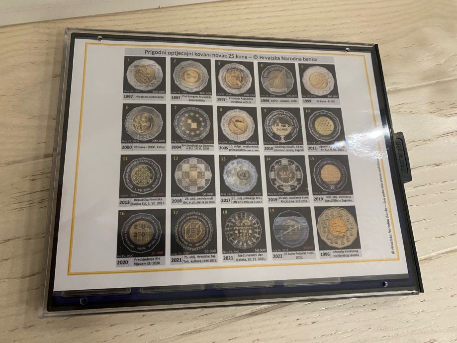 Prodajem prigodni komplet 25 kuna, 1997-2022 -19 kovanica u specijalnoj plavoj kutiji. Sve kovanice su posebno odabrane, zaštićene u kvalitetnim kapsulama, s crnom oblogom.