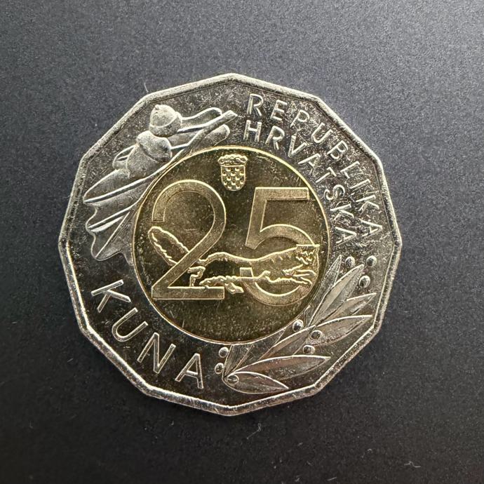 Prodajem prigodnu kovanicu od 25 kuna iz 2019. godine povodom obilježavanja 25. obljetnice uvođenja kune kao novčane jedinice Republike Hrvatske, 30. svibnja 1994. – 30. svibnja 2019. Kovanica je u izvrsnom stanju. Odgovaram na poruke ukoliko van nešto zanima.