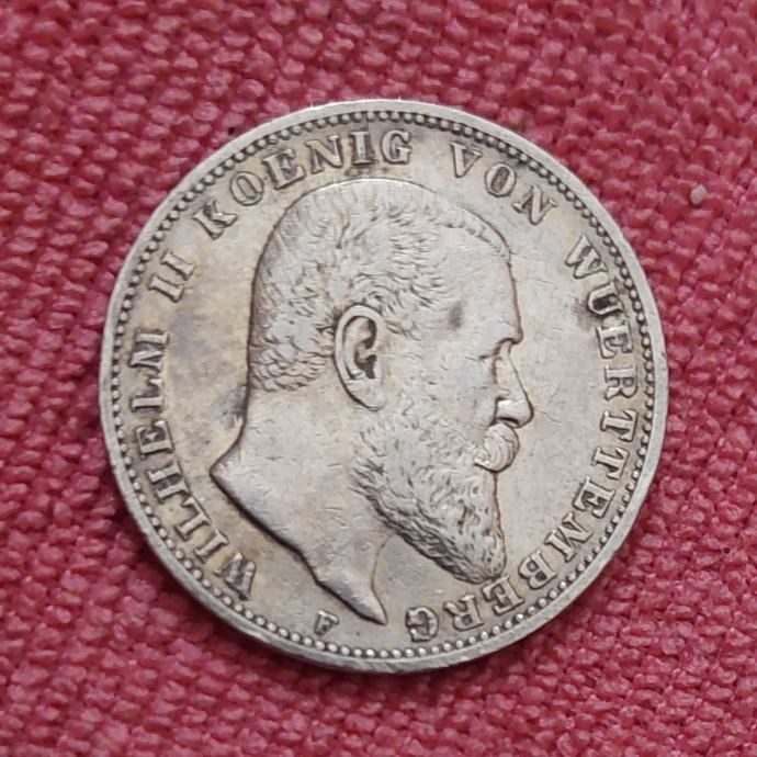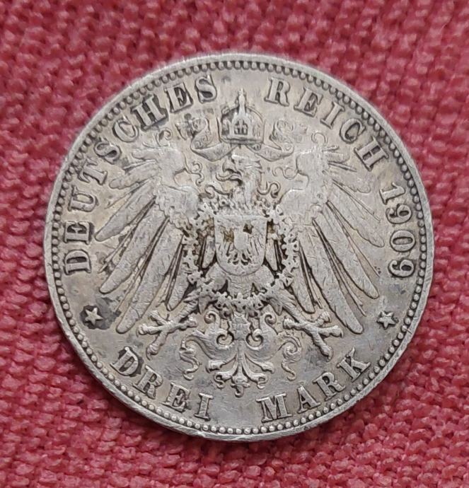 3 MARK 1909/SREBRO 16.6g./0.900/Wuerttemberg/Deutches Reich