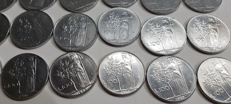 30 KOVANICA OD 100 LIRA RAZLIČITIH GODIŠTA (u opisu pišu koje godine)