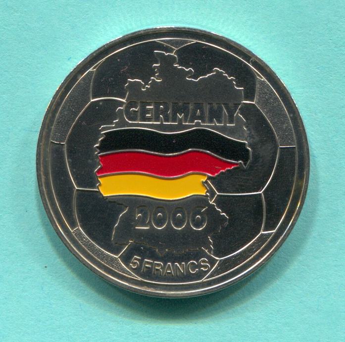 5 FRANCS CONGO 2001. WORLD CUP GERMANY, NEUSILBER