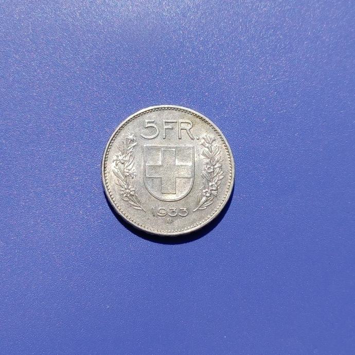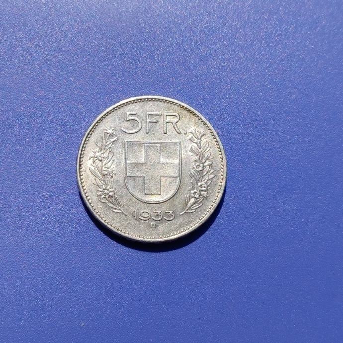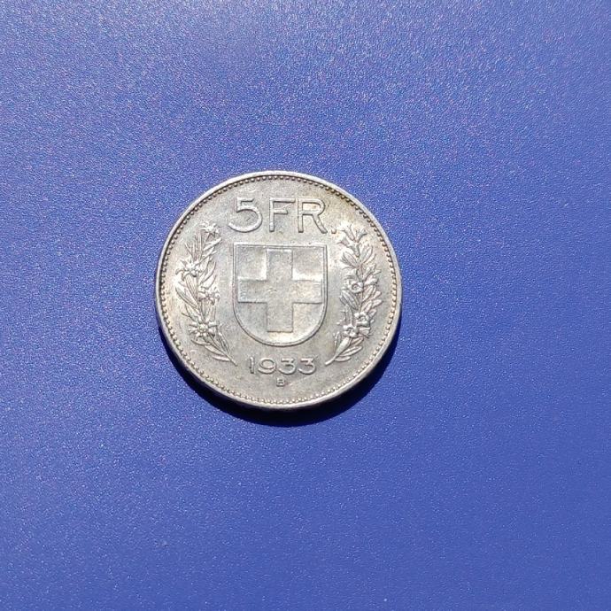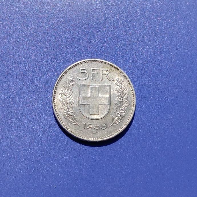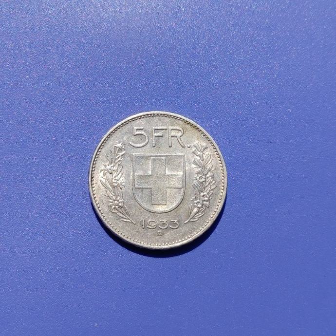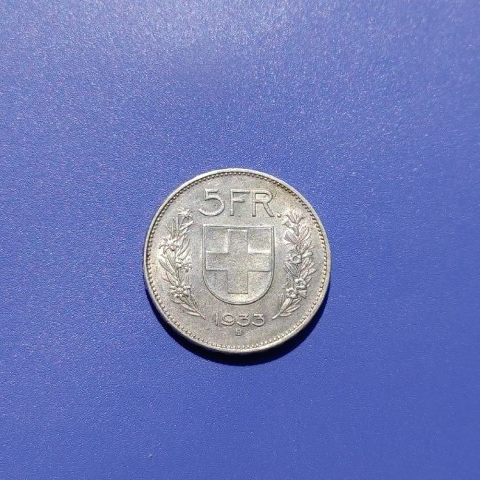 5 FRANCS (FRANAKA) 1933 B-ŠVICARSKA (SWITZERLAND)-SREBRO