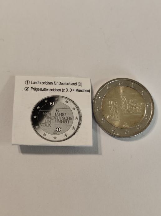 5 jubilarnih kovanica od 2 eura koje je izdala Njemačka 2025. godine povodom obilježavanja 35 godina od njemačkog ujedinjenja. UNC. Svaku izdaje druga njemačka kovnica novca. Poštarinu plaća kupac. Mob. 099 267 4205.
