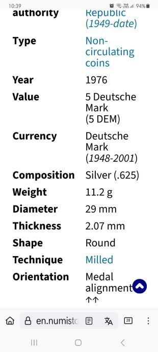 5 maraka SREBRO-mint stanje