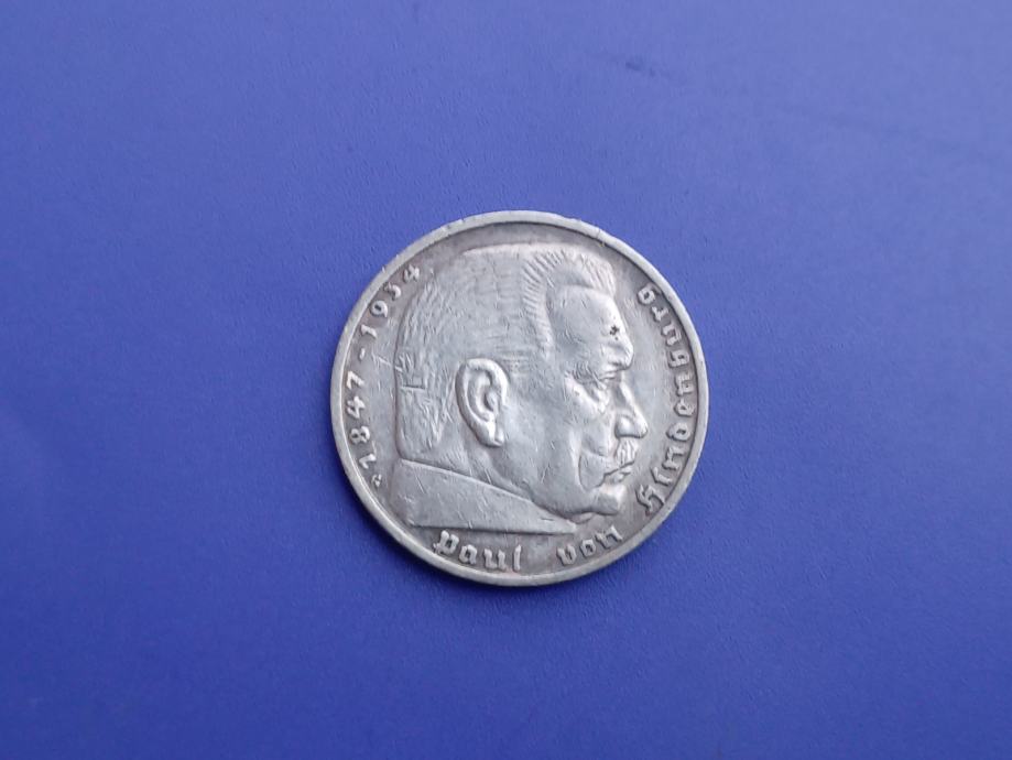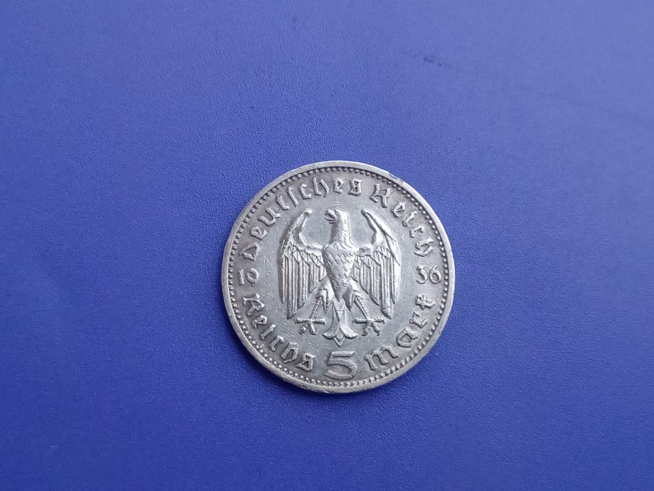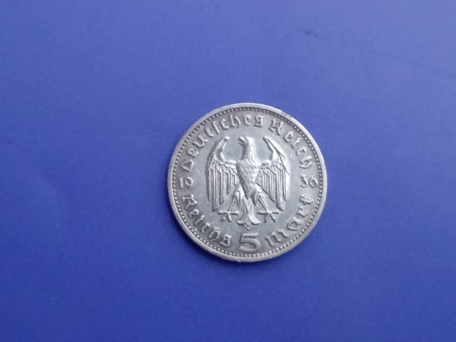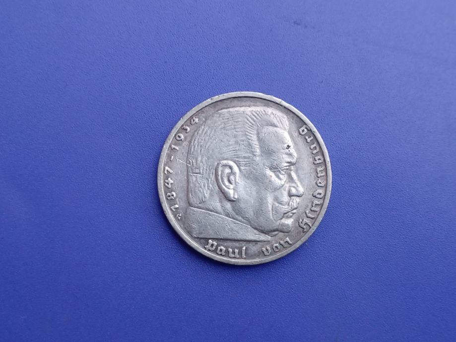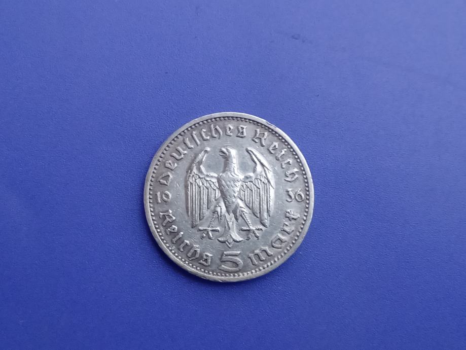 5 MARK (MARKE) 1936 G-HINDENBURG-NJEMAČKA-SREBRO-RIJETKO