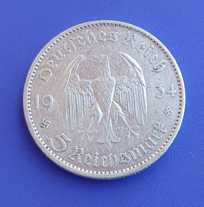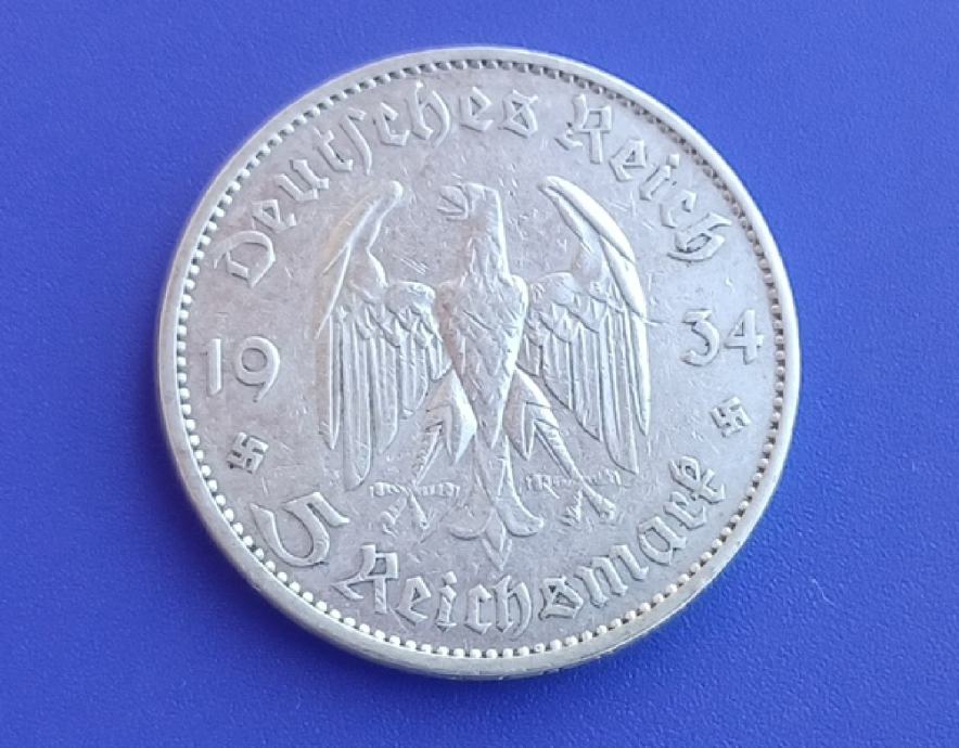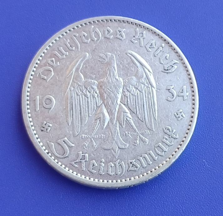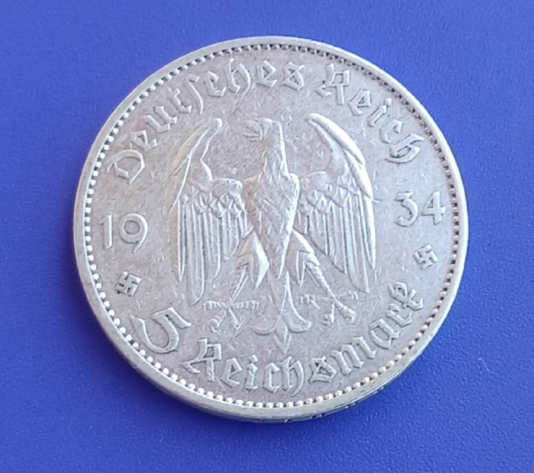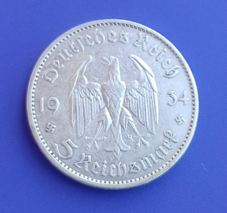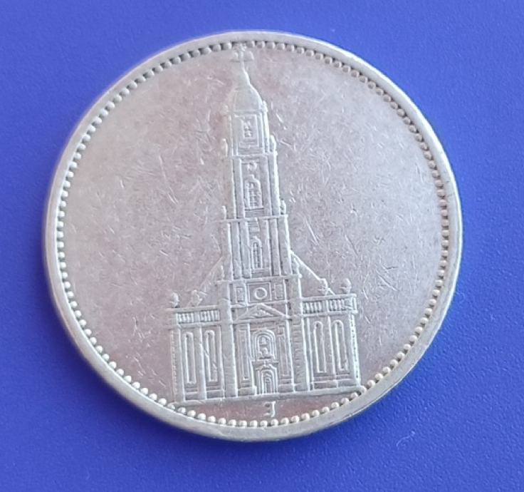 5 REICHSMARK 1934 J-NJEMAČKA-POTSDAM CRKVA-SREBRO-RJEĐE