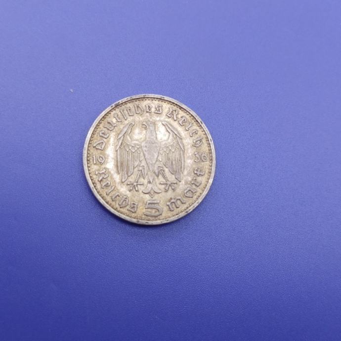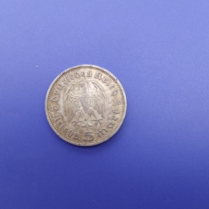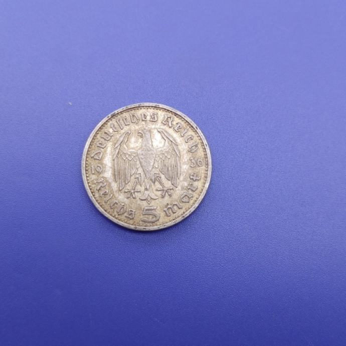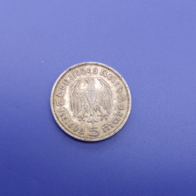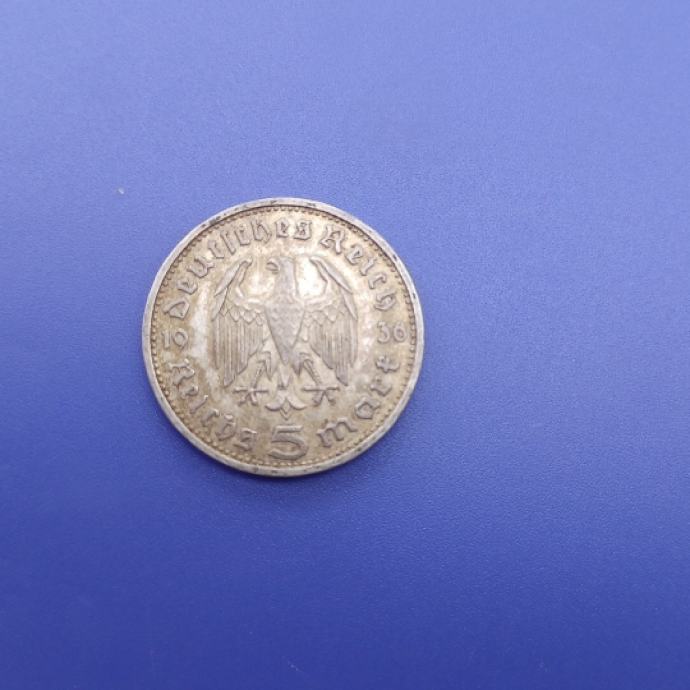 5 REICHSMARK 1936 E-HINDENBURG-SREBRO-RJEĐE