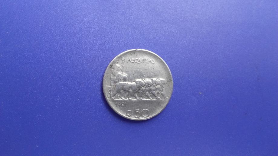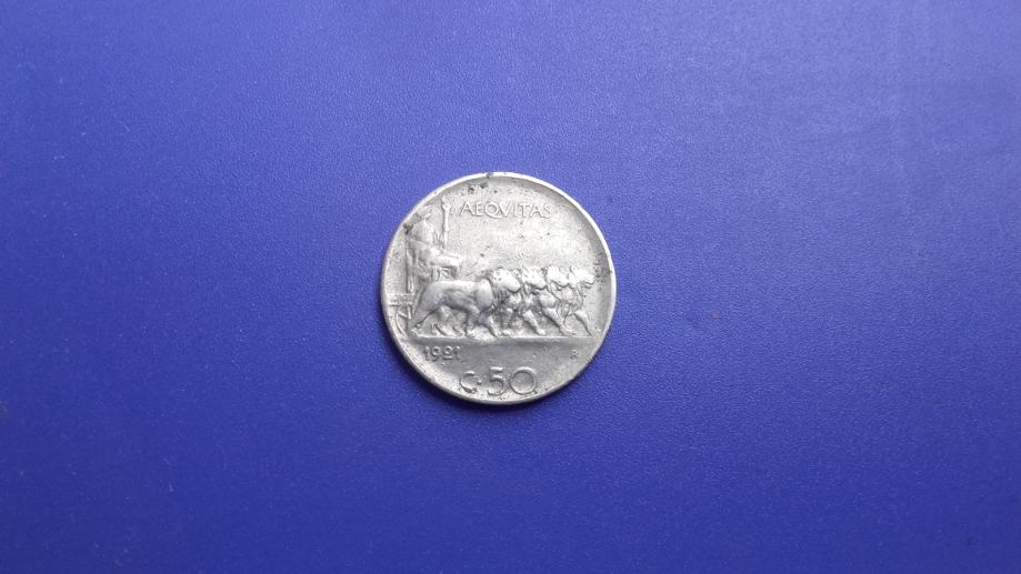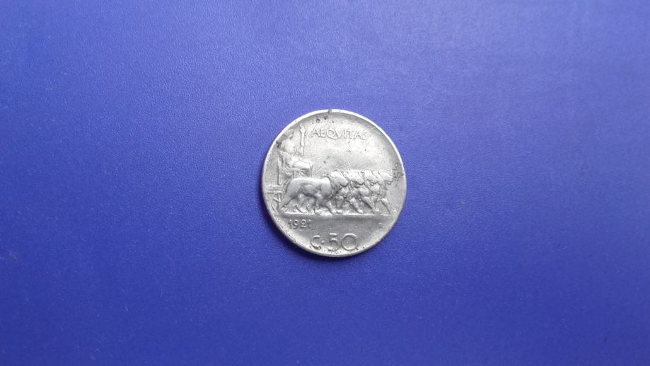 50 CENTESIMI 1921 REEDED-ITALIJA (ITALY)-RIJETKO