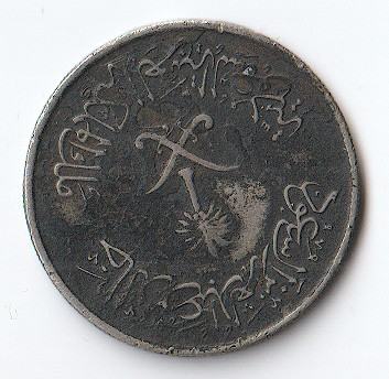 Revers: kraljevski monogram i islamski motivi, s datumom po hidžri i gregorijanskom kalendaru.