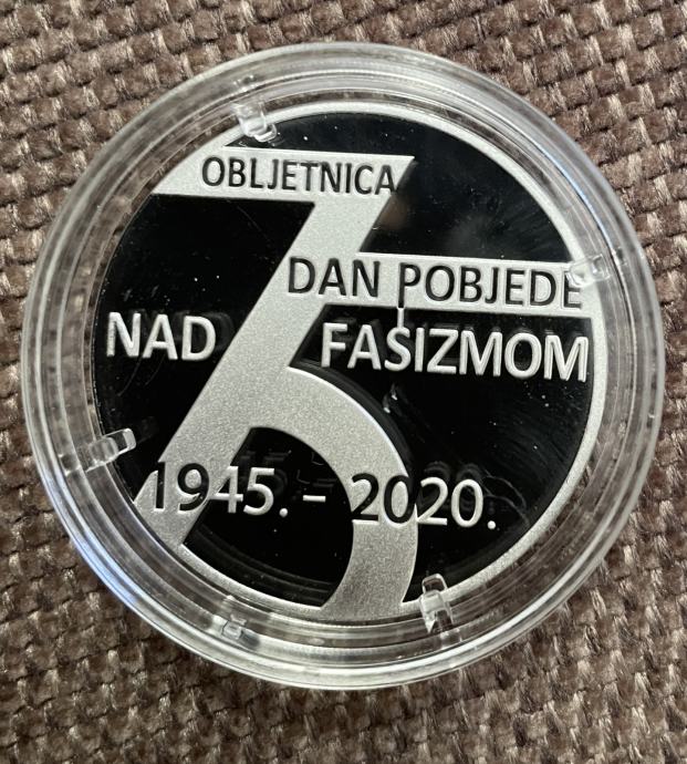 Prigodna srebrna kovanica 75. OBLJETNICA DANA POBJEDE NAD FAŠIZMOM 1945-2020, srebrnjak 150 kuna, masa 24,00 grama, čistoća 925/1000, sve u savršenom stanju.091/6550922. Poštarina prema cjeniku Hrvatske pošte ili osobno preuzimanje. Ne šaljem pouzećem.