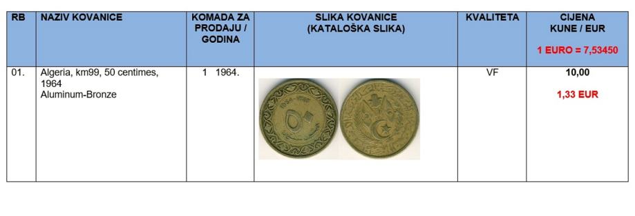 Za apoene kojih imam više komada stanje istih je navedeno u pregledu.