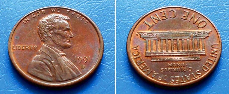 AMERIKA USA UNITED STATES 1 CENT 1991 D KM.201.b - ABRAHAM LINCOLN