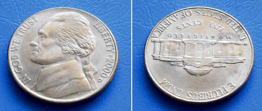AMERIKA USA UNITED STATES 5 CENTS 2000 D KM.A192 - THOMAS JEFFERSON