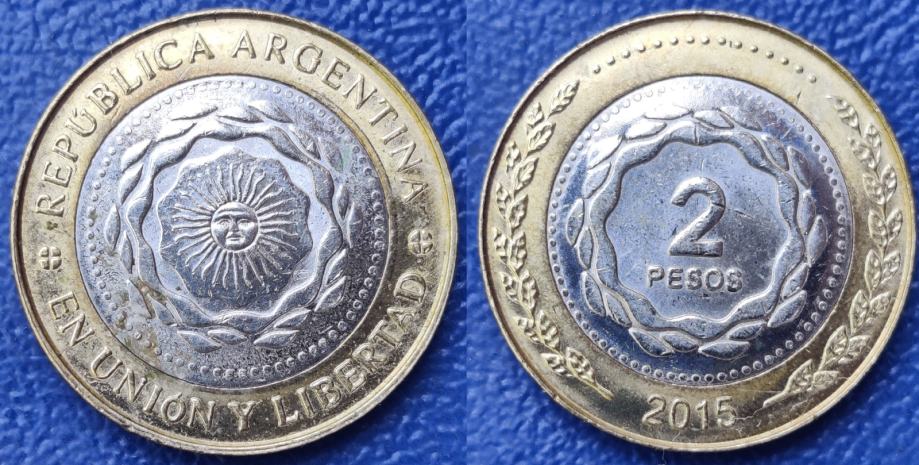 Argentina 2 pesos, 2015 +/ 1,60 EURO !!!