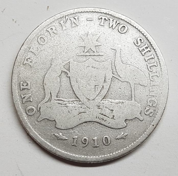 AUSTRALIA, 1 FLORIN - 2 SHILLINGS, 1910.