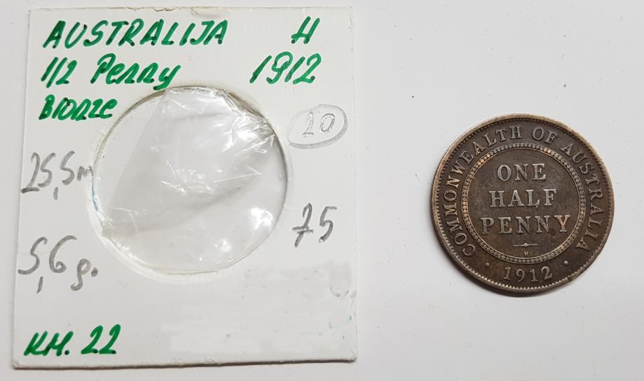 AUSTRALIA, ONE HALF PENNY, 1912.