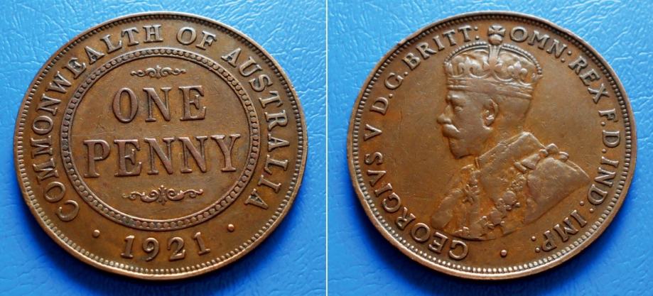 AUSTRALIJA AUSTRALIA 1 PENNY 1921 m & sy KM. 23 - KRALJ GEORGE V