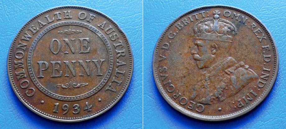 AUSTRALIJA AUSTRALIA 1 PENNY 1934 m KM. 23 - KRALJ GEORGE V