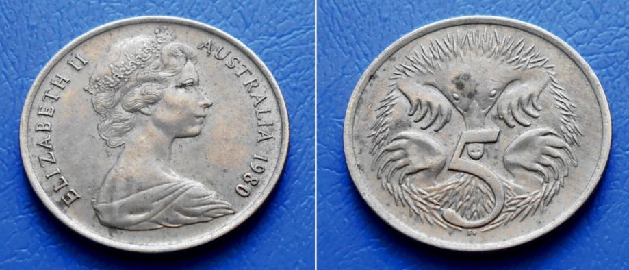 AUSTRALIJA AUSTRALIA 5 CENTS 1980 KM. 64 - JEŽ