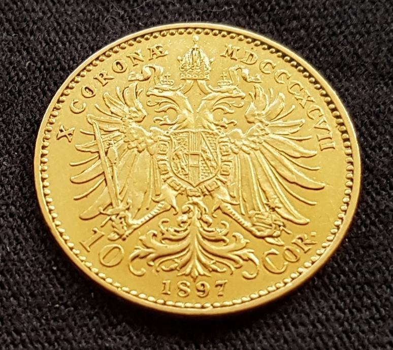 AUSTRIA 10 CORONA, ZLATNIK, 1897, FRANZ JOSEPH I, ZLATO *900