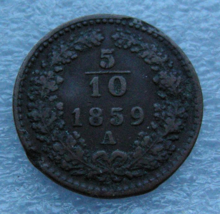 Austria - Habsburg 5/10 KREUZER 1859A