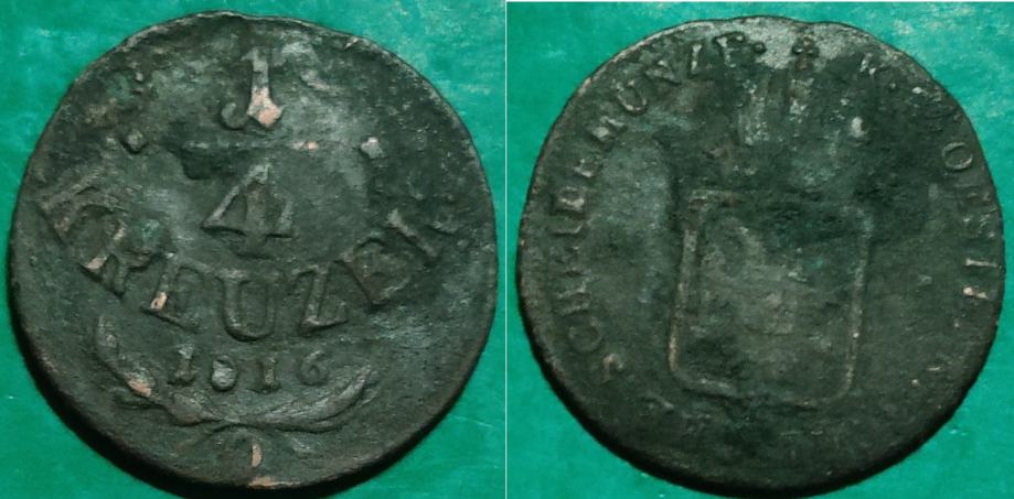 Austria ¼ kreuzer, 1816 "O" - Oravița jako rijetko ****/