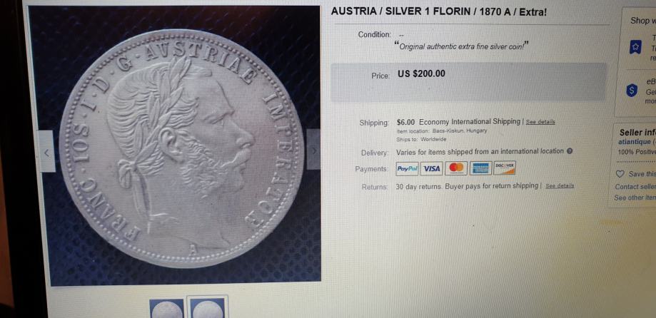 AUSTRIAN SILVER COIN 1 FLORIN 1870 A - SREBRNJAK