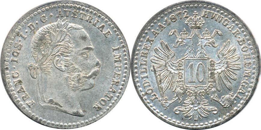 Austrija 10 Kreuzer 1872 Franz Joseph I UNC