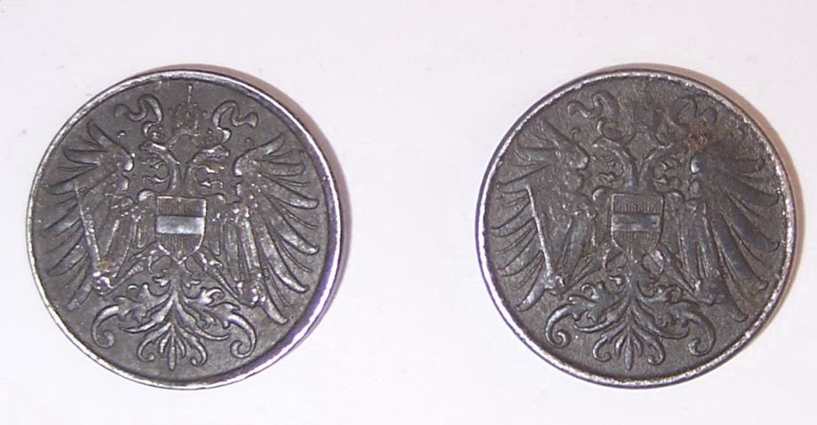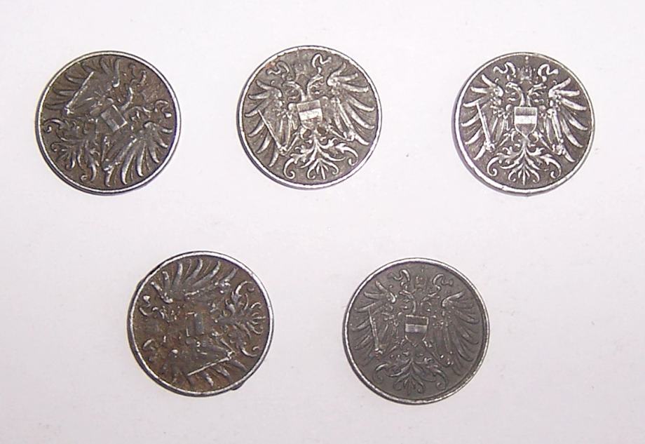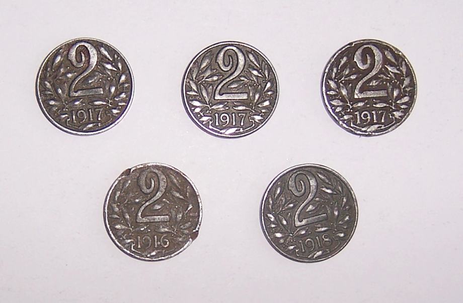 Austrija - 2 heller - 1916-1918 - lot 5 kom.