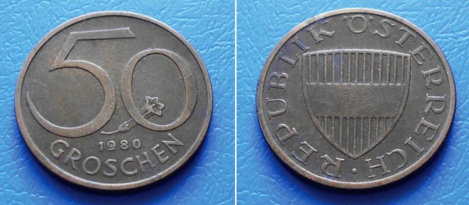 AUSTRIJA AUSTRIA 50 GROSCHEN 1980 KM: 2885 - AUSTRIJSKI GRB