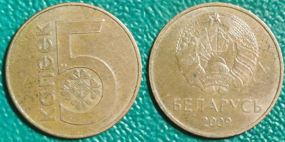 Belarus 5 kopeks, 2009 Thick rays, convex star /Arms type 1995/ ***/