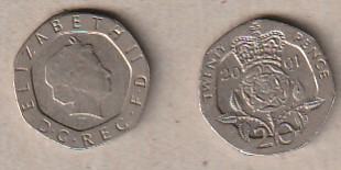 BRITANIA TWENTY PENCE 2001,2002 COPER-NIKAL 2 € KOMAD
