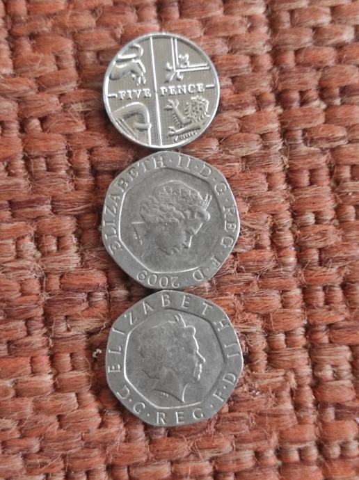 Tri kovanice od toga dvije po 20 Pence i jedna od 5 Pence.Za sve informacije nazovite na broj 097-6601365 ili pošaljite upit na Viber ili Njuskalo, a Šaljem Poštom ili Tiskom ili u dogovoru sa kupcem, stanje odlično, Vidi slike.