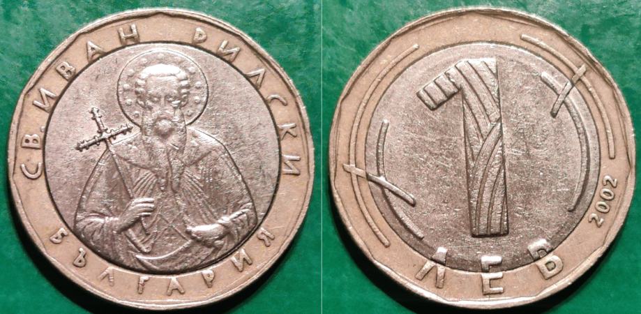 Bulgaria 1 lev 2002 Sveti Ivan Rilski ***/