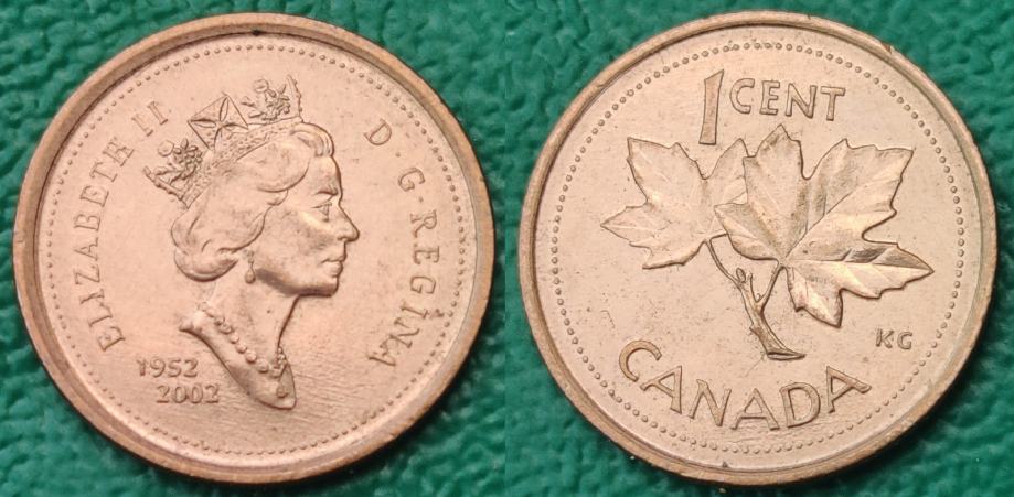 Canada 1 cent 2002 50th Anniversary - Succession of Queen Elizabeth I*